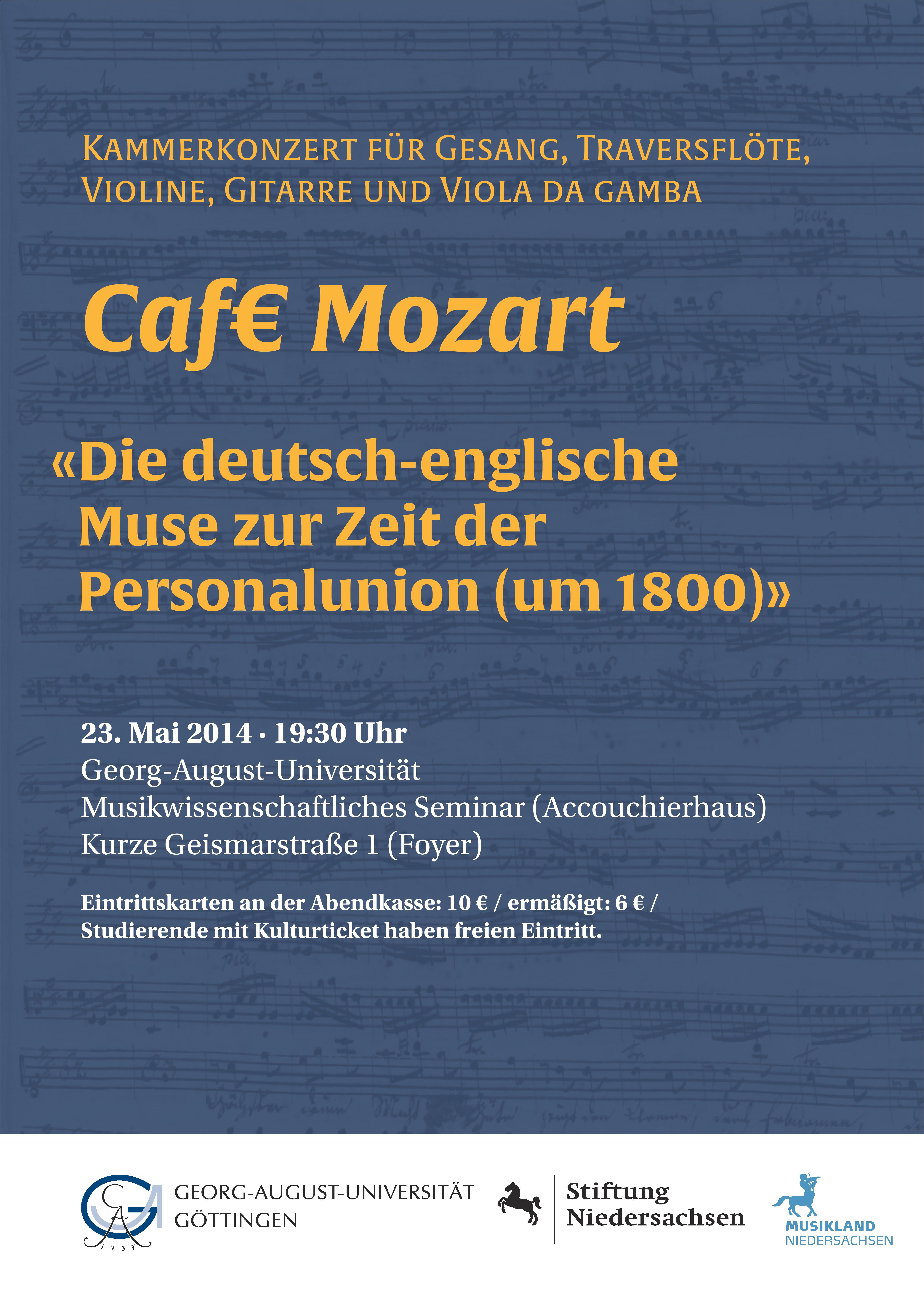 Konzerte am Musikwissenschaftlichen Seminar Klangbilder-Konzert digital, 17.12.2021 Klangbilder-Konzert online 14.12.2020 Klangbilder-Konzert 11.12.2019 Klangbilder-Konzert 17.12.2018 Klangbilder-Konzert 13.12.2017 Improvisationen im Accouchierhaus: 29.11.2017 Klangbilder-Konzert 8.12.2016 Klangbilder-Konzert 10.12.2015 Klangbilder-Konzert am 10.12.2014 (pdf.) Vokalensemble Ars Nova Trajectina (NL) unter der Leitung von Paul Bocken singt Renaissancewerke von Josquin Desprez und Jean Mouton, 15.2.2014 (.pdf) Cafe Mozart spielt im Accouchierhaus am 23.5.2014 (pdf.) Klangbilder-Konzert am 11.12.2013 (pdf.) Klangbilder-Konzert am 15.12.2010 Konzert der Donald Kachambals Kwela Heritage Jazzband des Oral Literature Research Programme, Chileka, Malawi, 3.2.2010 Klangbilder-Konzert am 12.12.2007 (pdf.) Klangbilder-Konzert am 6.12.2006 (pdf.) Musica Viva: Neue Musik an der Universität Göttingen